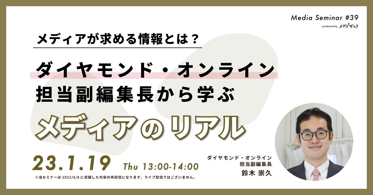 メディアが求める情報とは?「ダイヤモンド・オンライン」担当副編集長から学ぶメディアのリアル