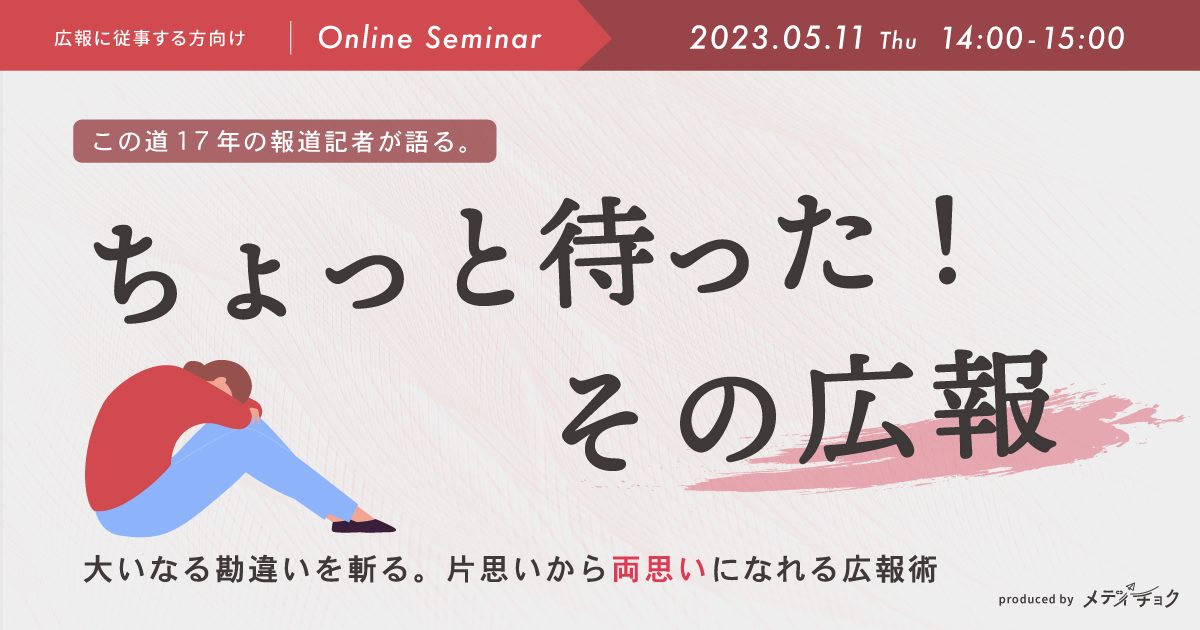 この道17年の報道記者が語る。「ちょっと待った!その広報」 大いなる勘違いを斬る。片思いから両思いになれる広報術