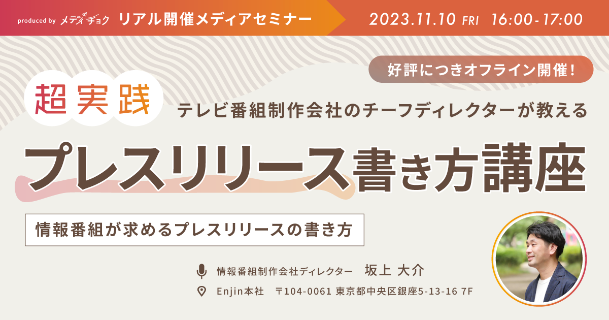 【オフライン開催】テレビ番組制作会社の現役ディレクターが教える|今日から使える「情報番組が求めるプレスリリースの書き方」