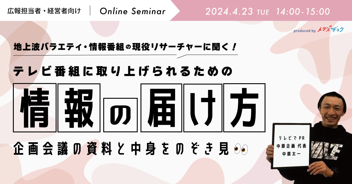 【大好評により再配信】テレビ取材獲得の方程式|6000社以上のPRでわかったテレビに取り上げられる企業の特徴