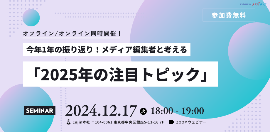 【オフライン/オンライン同時開催】今年1年の振り返り!メディア編集者と考える「2025年の注目トピック」